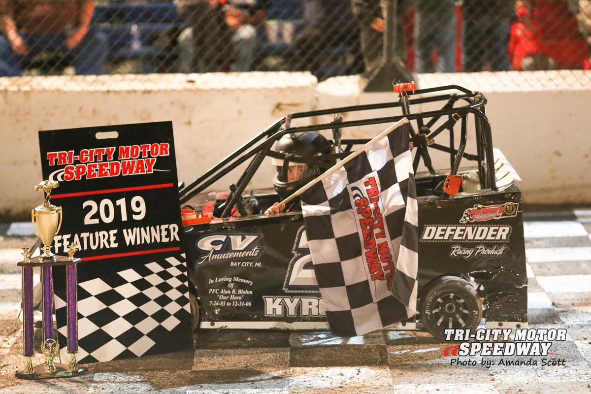 05/31/2019 (Auburn MI) Racing at Tri-City Motor Speedway closed out the month of May with 110 cars and drivers packing the pit area of the Auburn oval. With the weather finally feeling more summer-like, fans also flocked to see how their favorites would fair at the end of the evening. However, like it has been most of the 2019 season, not only did the drivers race each other but they also had to race Mother Nature. Dolney RV Center along with the Michigan Auto Racing Fan Club were also on hand as sponsors of the evening’s events. The Pro Stock and IMCA Modified classes weren’t able to compete in their features due to storms that moved across the area later in the evening, but the racing that was completed put the fans at the edge of their seats.