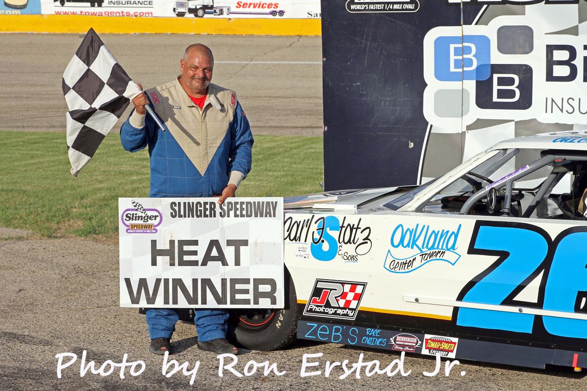 Tom Elsinger Jr. edged Brady Held to win the 25-lap Slinger Bees main event with Bill Ostovich Jr. closing to finish third. Billy Braun nailed down the fourth finishing position over Brandon Mennicke who crossed the finish line in fifth.