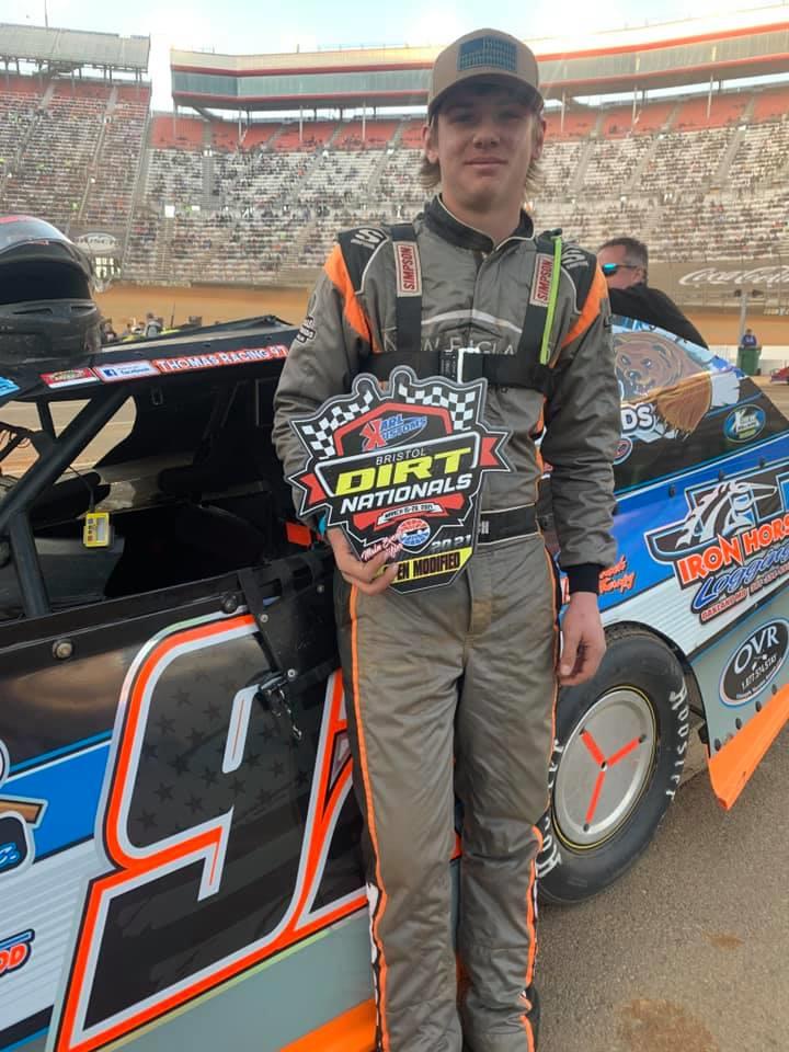 Mitch Thomas, from Oakland, MD qualified for a place in Saturday night's big race at Bristol Dirt Nationals. Thomas, a 15 yr. old student at Southern High School started earlier in the week with an 8th place finish in the feature and topped things off with securing his spot in the big money show.