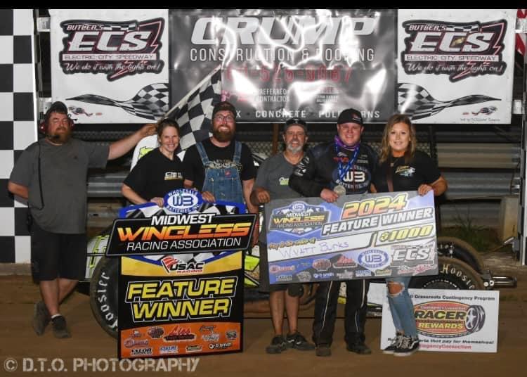 Butler, Mo: Saturday night the Wholesale Batteries USAC MWRA Sprints raced for the second night in a row at Electric City Speedway with (Topeka, Kan) racer Wyatt Burks taking the checkered flag first over (KCMO’s) Tom Curran, and (Bonham, Tex) wheelman Kobe Simpson rounding out the podium.