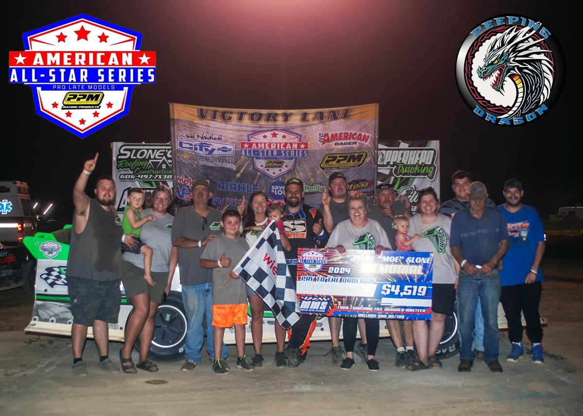 We'd also like to thank all the partners who help us for the 2024 season: PPM Racing Products, American Racer: "The Official Tire of the AAS," Rick Hendrick City Chevrolet, Chevrolet Performance: Vehicles, Parts, Racing, Daytona 1: "The Official Lubricant of the AAS," O'Reilly Auto Parts: "The Official Auto Parts Store of the AAS," Mahle Motorsport, Wieland: "The Official Aluminum of the AAS," Pro Fabrication: "The Official Header of the AAS," Save-A-Lot: "The Official Grocery Store of the AAS," Gasko Gaskets, BHR Fabrication, Double Nickle Race Cars, Outside Groove, Smash-It, VP Racing Fuels: "The Official Fuel of the AAS," ATC Bolts and Fasteners, Rocky Top Family Medicine, Beckley Motor Speedway, Burgess Motorsport Consulting, ML Performance Midwest, Dirt Rich TV, Fast Fab, Hyperco, Massey Powersports, MD3, Popbit, Peeping Dragon Photography, Dirt Track Racers Recovery for Christ, Terror Race Cars, QA1, Warrior Race Cars, WV Fireworks Outlet, and XS Power Batteries.