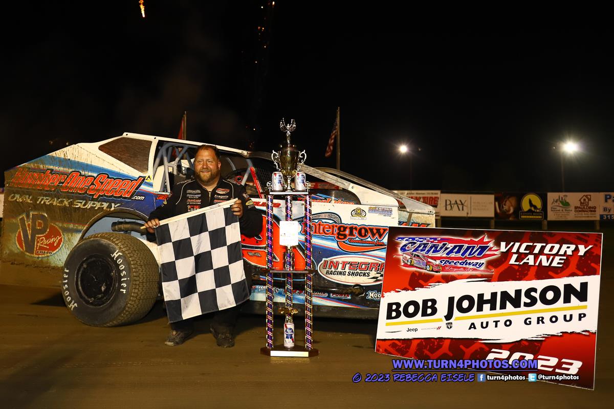 Mother Nature has been the talk of the season for 2023 at the Can Am Speedway and once again the rain decided to make an appearance. Light showers covered the region for the majority of the afternoon but clear spots allowed the track crews to work in a fast facility. Persistence paid off as the drivers and fans were greeted to a great surface and thrilling racing in all the 3 divisions.