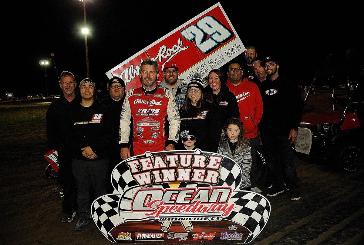 WATSONVILLE, CALIFORNIA (April 27, 2024) – Bud Kaeding of San Jose steered the No. 29 to victory in Friday night’s third round for the Ocean Sprints presented by Taco Bravo at the Ocean Speedway in Watsonville. Kaeding won the series finale last August and returned to form as part of a four-division program at the Santa Cruz County Fairgrounds.