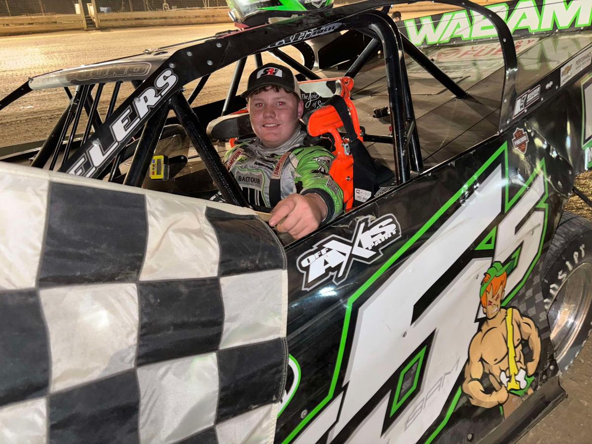 A Feature 1 (15 Laps): 1. 4J-John Mollick[2]; 2. 9-Arnie Kent[5]; 3. 41-Blaze Myers[3]; 4. 68-Brent Rhebergen[4]; 5. 24-Gale Ruth Jr[1]; 6. 23-Charlie Utsinger[7]; 7. 1T-Ricky Tucker III[6]; 8. 17-Trent Marshall[9]; 9. 55-Luke Mulichak[10]; 10. 5Z-Devon Deeter[8]; 11. 29-Brandon Shughart[11]; 12. 13K-Kevin Kaserman[12]; 13. 48T-Carlos Rosario[13]