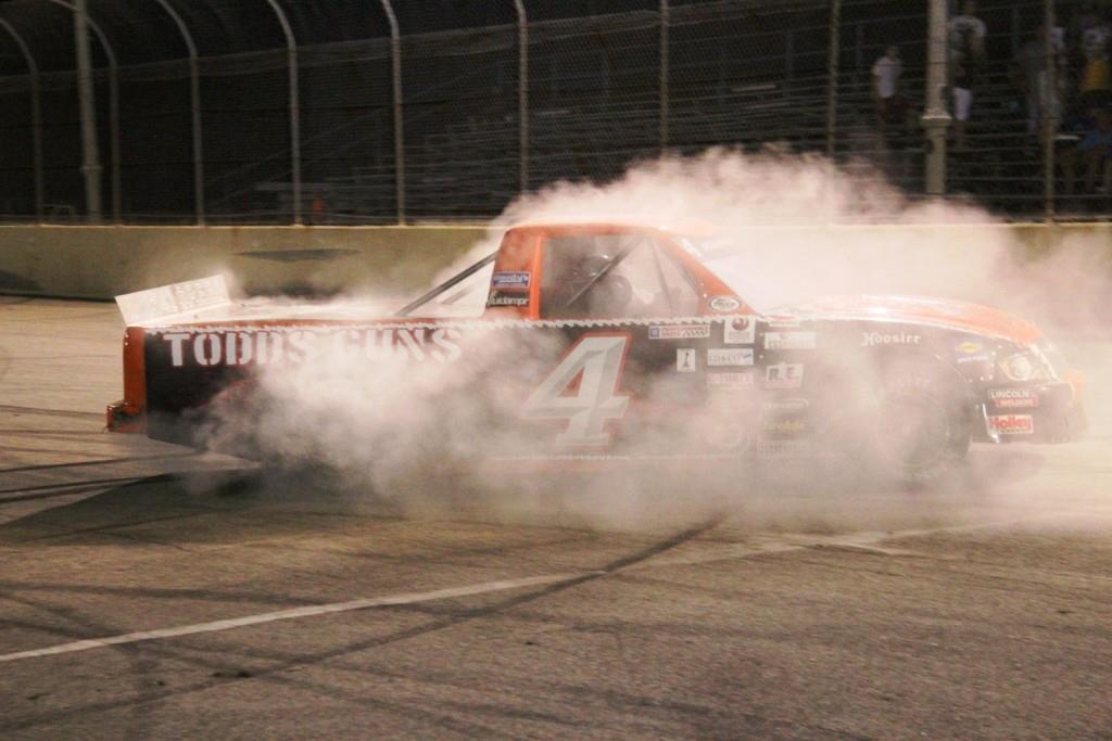 “I saw an opportunity (to pass) when I saw sparks flying and flames coming from that right rear,” said Myers about passing Quarrick. “This truck was unbelievable. It was glued to the bottom. I would like to thank my guys for this, they gave me a great truck tonight.”