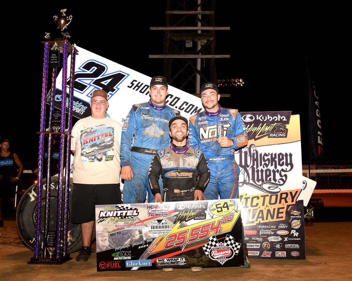 It was a situation of being in the right place at the right time for Rico Abreu in Saturday's seventh annual Dean Knittel Memorial at Portsmouth Raceway Park. After taking the lead on Lap 21, the #24 pilot controlled the remaining 10 circuits to cash a $25,554 payday with his third Kubota High Limit Racing win of the season.