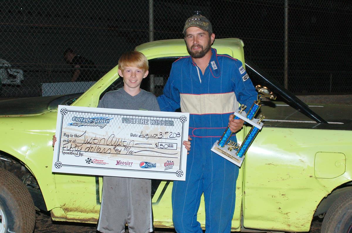 The Open Competition 4-Cylinder division was dominated by Justin Austin of Pleasant Hill. Austin would lead the majority of the laps in the main event and pick up the win for owner Randy Kuhl and the Big Dog Recycling/Big B Tire #17 truck.