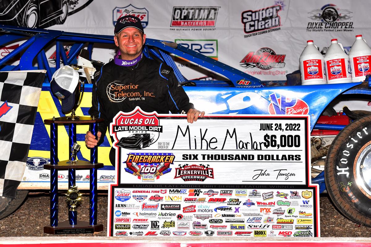 Sarver, PA (June 24, 2022) – For the second night in a row Mike Marlar won a preliminary feature at Lernerville Speedway. Marlar took the lead from Ricky Thornton Jr. on lap 14 to score the Lucas Oil Late Model Dirt Series win on Friday night; setting himself up for a good starting spot in one of the six heat races to be contested Saturday night for the 16th Annual Firecracker 100 Presented by Big River Steel paying $50,000-to-win.