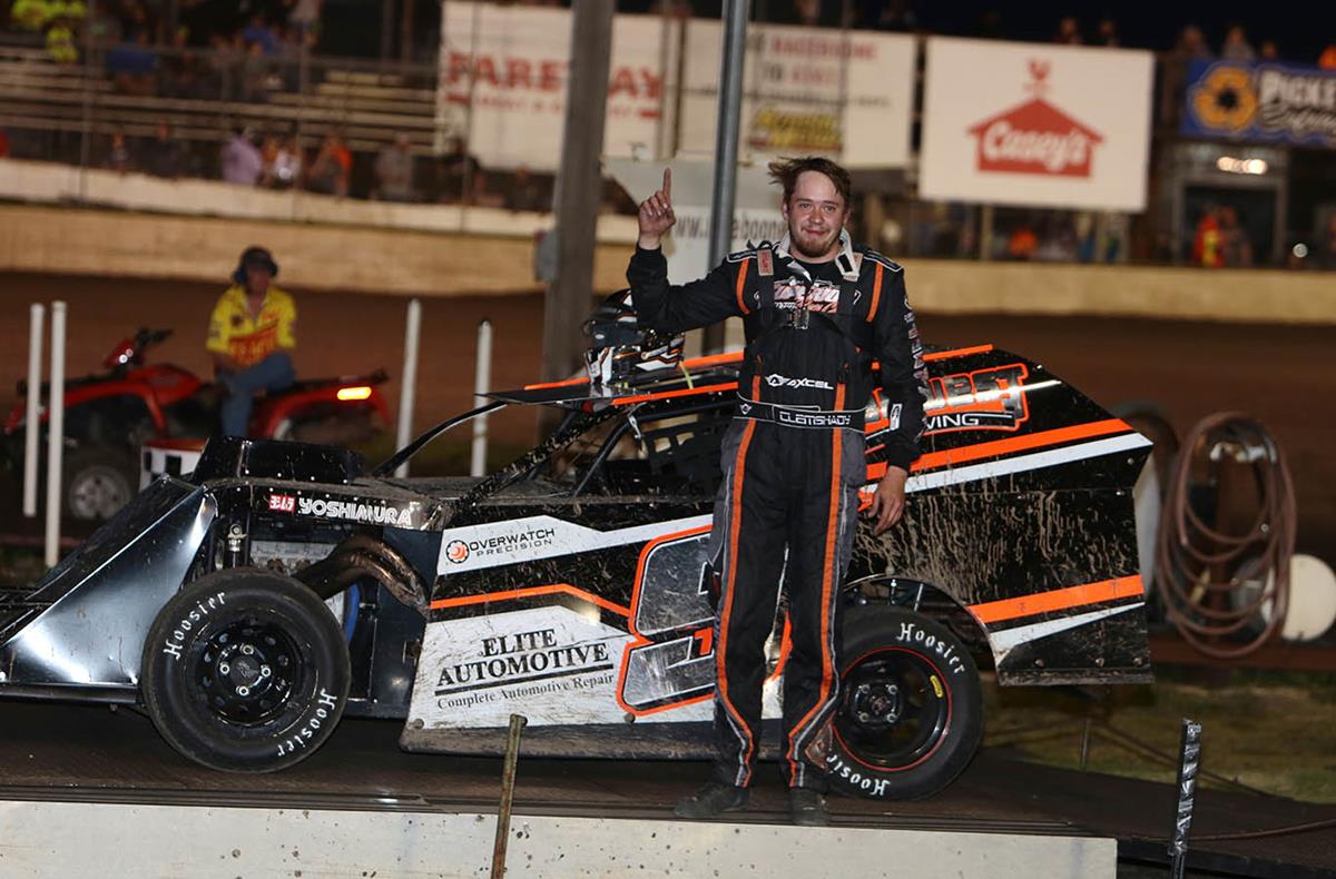 Things kicked off with the IMCA Stealth STARS Mod Lites, presented by Car Quest Auto, Truck and Farm and their 15 lap main event. As the race went green, it was Josh May holding down the top spot, but that didn't last long as Riley Clem, Bakersfield, California took over at lap three. From there on, it was Clem's race as he raced home to the checkers with hardly a challenge. There was a lot of action going on behind him however, as May, Bryan Zehm, Murfreesboro, Tennessee racer Jaedon McDowell, and Austin Gray were locked in a tight battle for position. With just two laps remaining, May was suddenly off power and out of the challenge, leaving the others to battle it out. As the checkers flew, it was Clem taking the easy win, Gray came home in second, third went to Bryan Zehm, McDowell was fourth, and Joe Glick came from eleventh starting spot, to claim third.