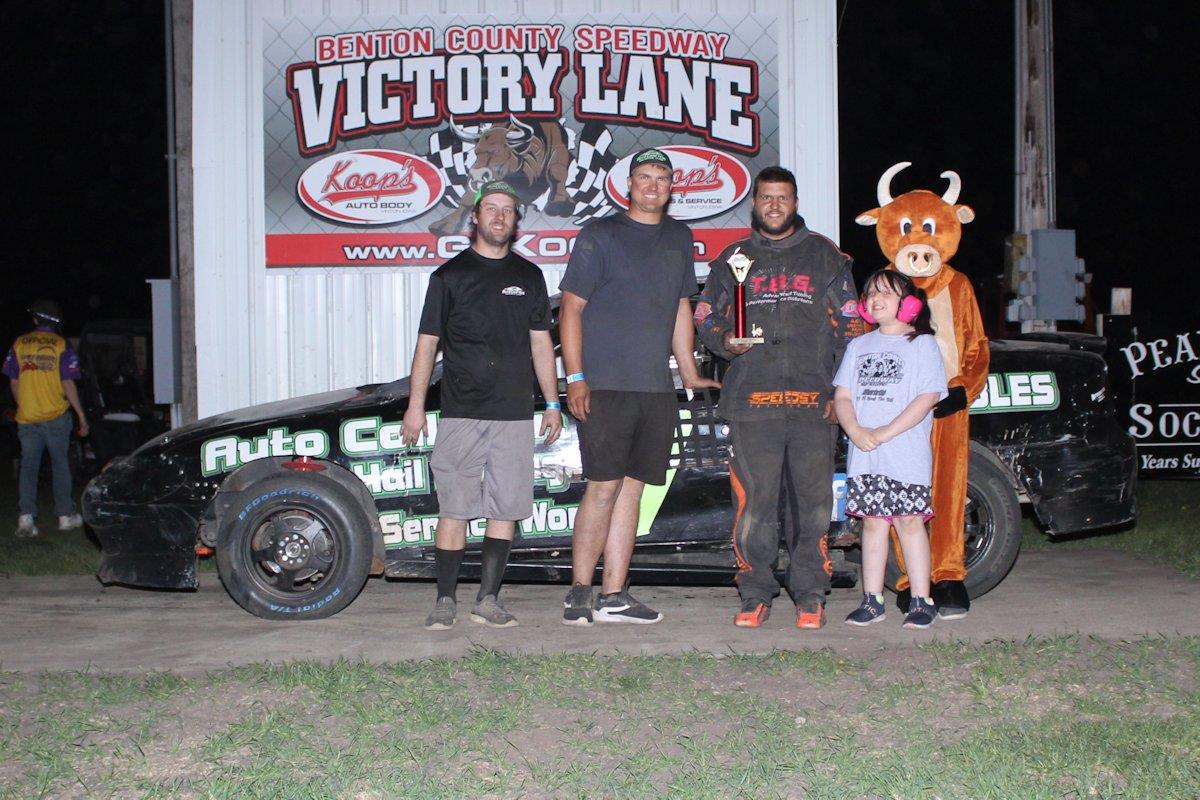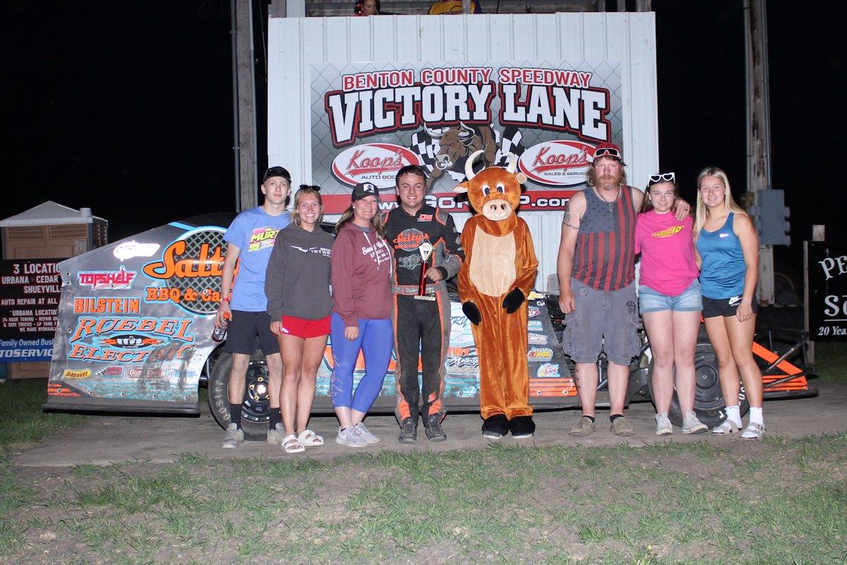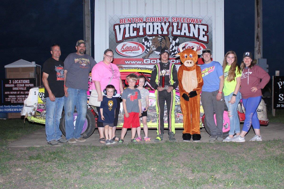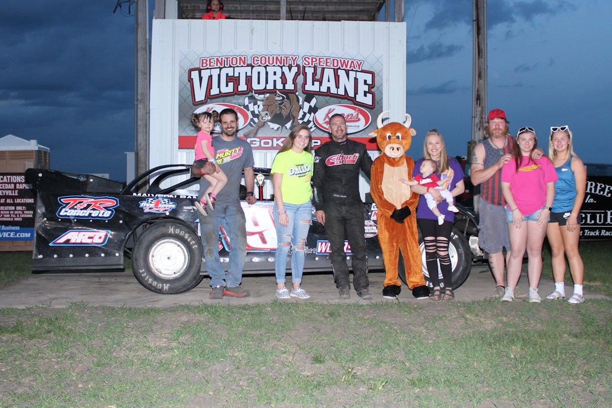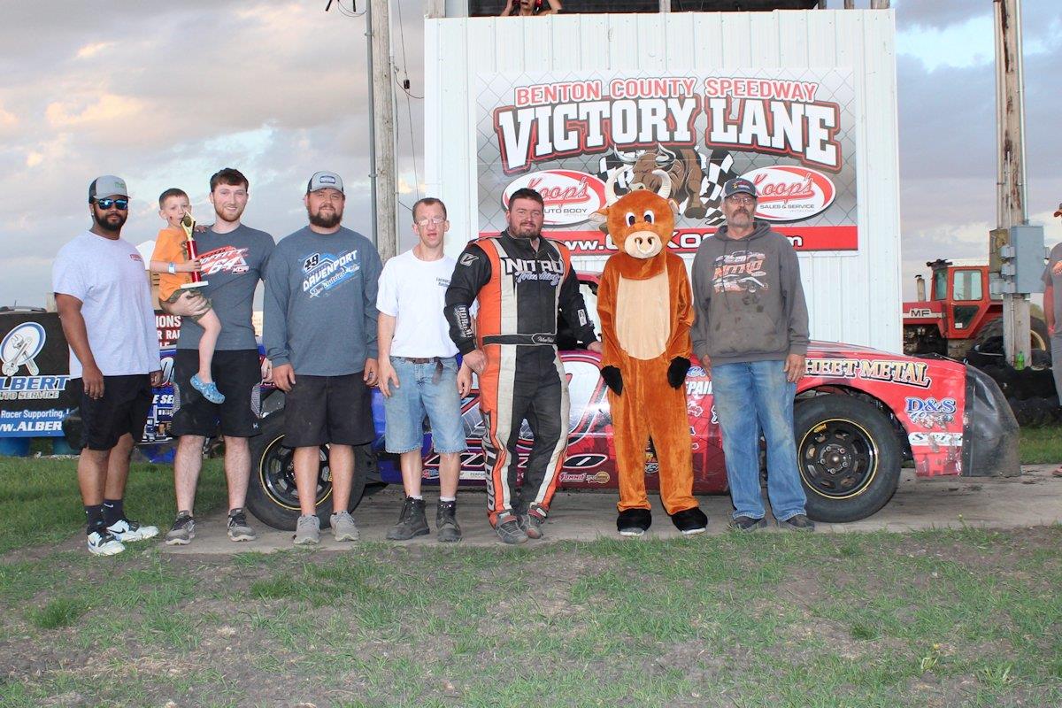 VINTON, Iowa - Richie Gustin has already won a number of high paying IMCA Modified events in his career at Benton County Speedway. Sunday night he added $1,500 and a Late Model win to his Bullring accomplishments.