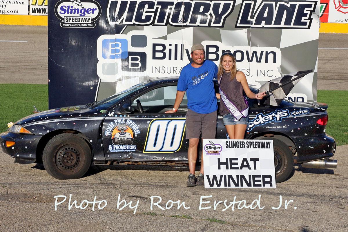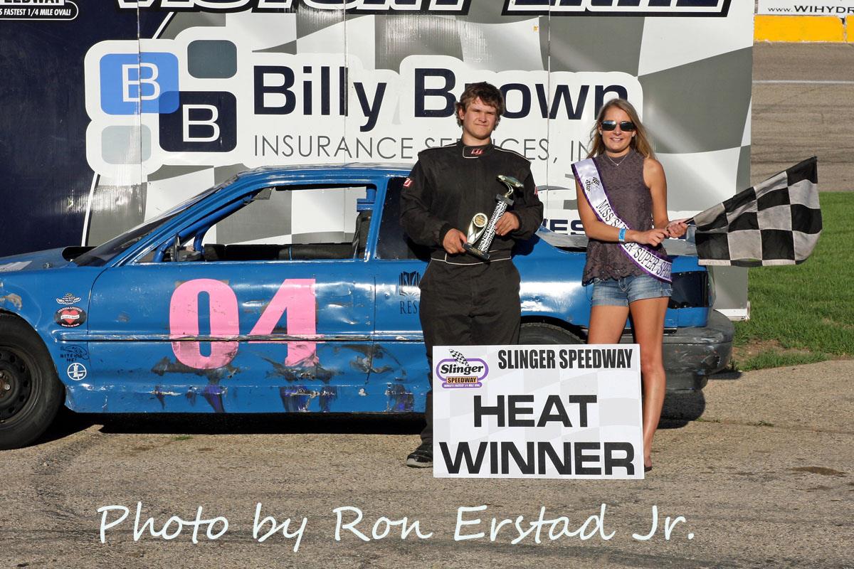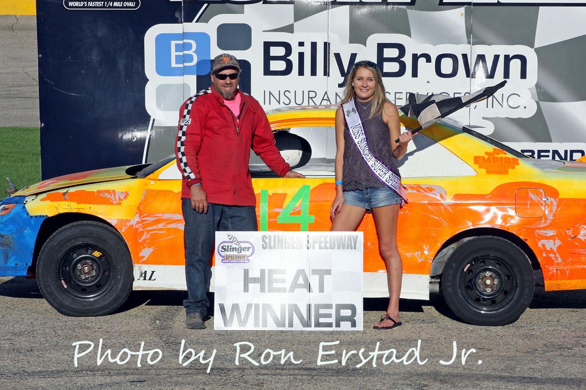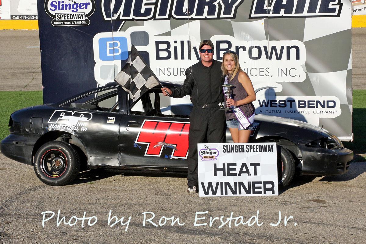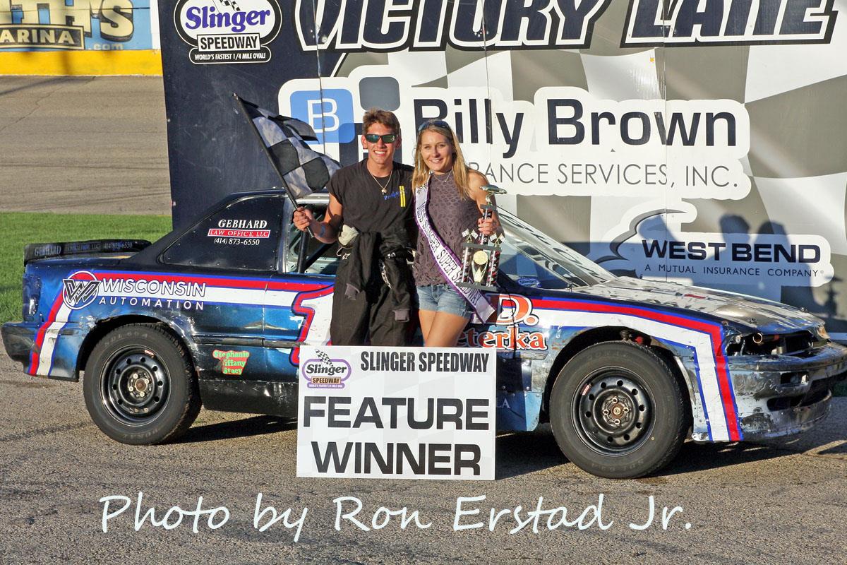 Ricky Gebhard edged Brady Held to win the 25-lap Slinger Bees feature. Misty Benn finished third while Brandon Tackes was able to win family battle with his father Marty Tackes over fourth and fifth place. Slinger Bees heat races were won by Al Strobel and Brady Held while fast time was set by Tom Elsinger Jr. with a lap completed in 15.206 seconds.