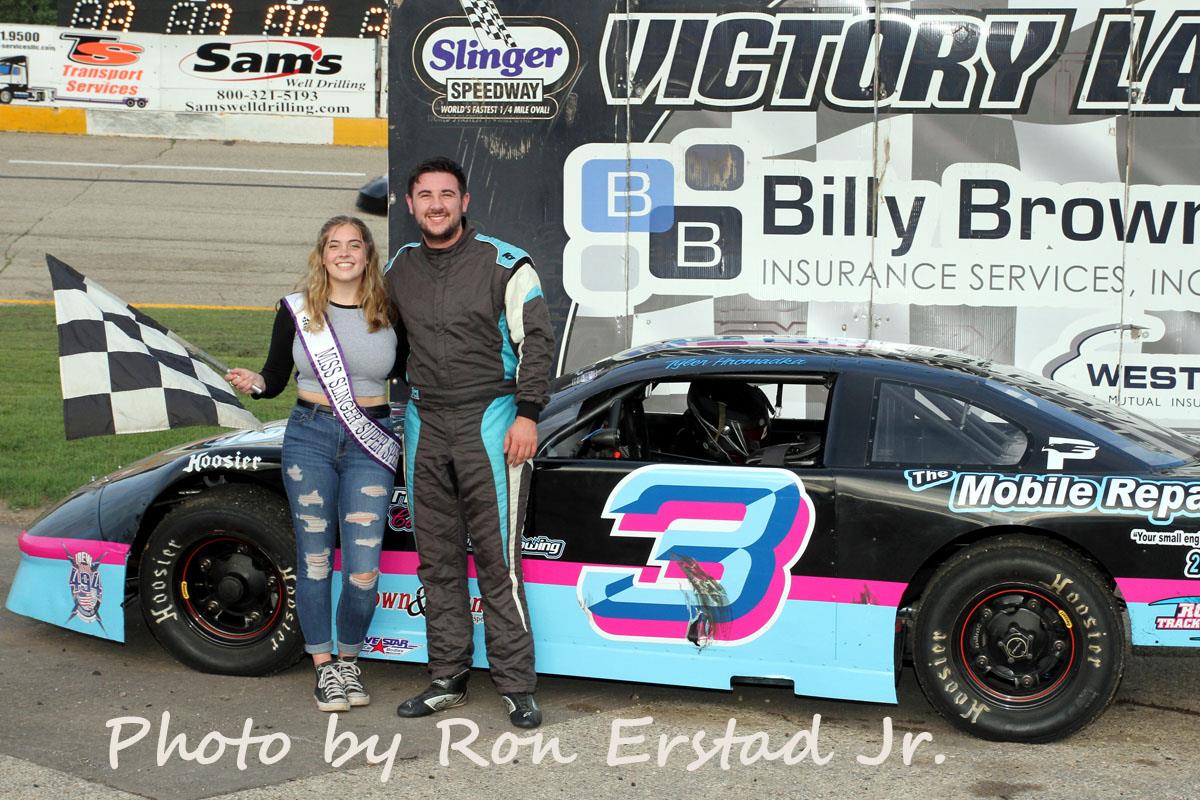 Dylan Lemberger scored his first feature win of the season in the 25-lap Slinger Bees main event as he held off Tom Elsinger Jr. and Brian Stanczyk for the victory. Brian Hillringhouse and Brandon Mennicke finished fourth and fifth respectively. Slinger Bees heat races were won by Scott Emrich and Brandon Mennicke while Tracy Neu was the fastest qualifier after circling the speedway in 15.239 seconds.