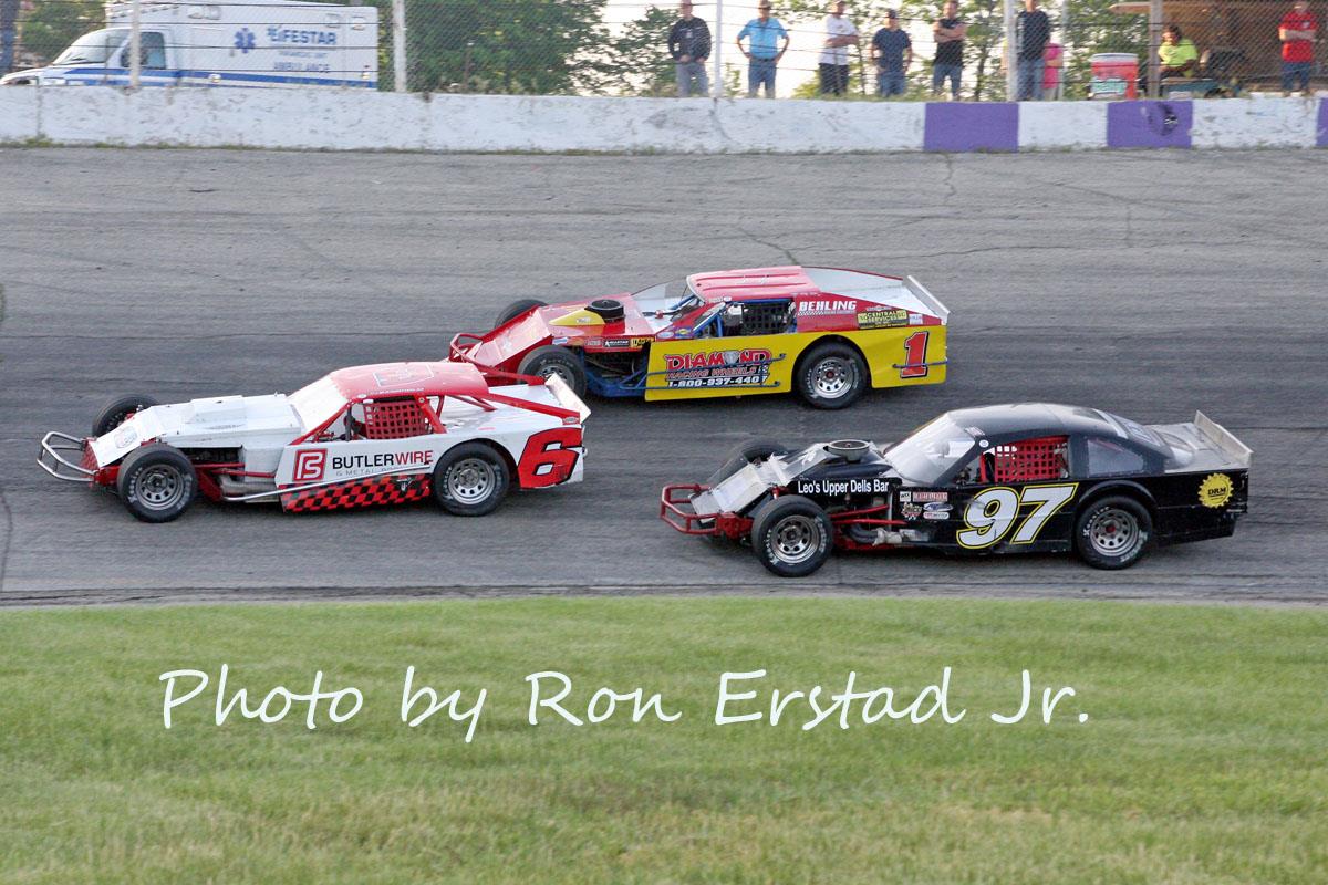 The Outlaw Modified division competed for the first time this season at Slinger and Steven Schulz won the 30-lap feature over James Swan and Bill Prietzel. While Schulz led every lap, Swan gave him a run for his money after closing in late in the event. Schulz’s ability to work lapped traffic proved to be the difference as the captured the victory as Swan finished second. Prietzel took the checkered flag in third while Justin Okruhlica and Bill Tandetzke rounded out the top five finishers. Bill Prietzel was the winner of the Outlaw Modified heat race and he also set fast time by circling the speedway in 12.279 seconds.