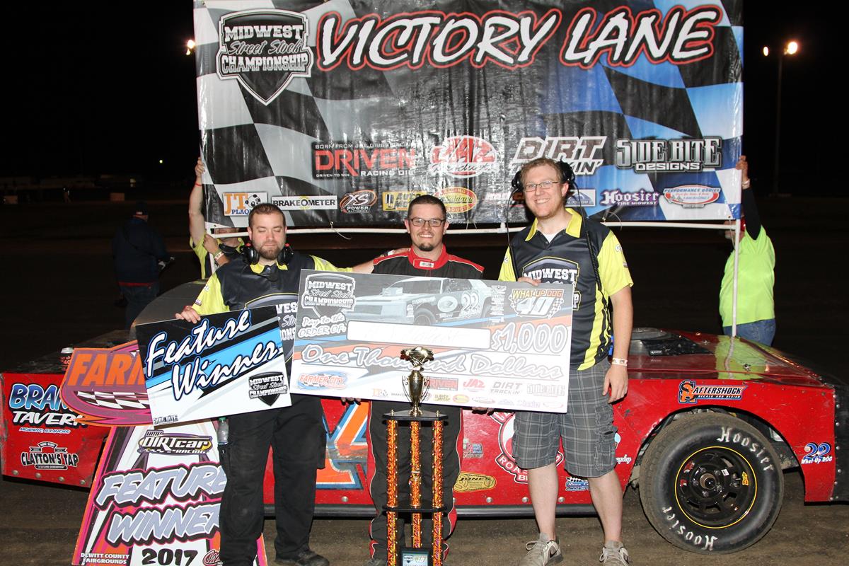Midwest Street Stock Championship Point Leader Nick Macklin would come home second followed by Jerrad Krick, Dirt Trackin' Hard Charger Dave Crawley, Jr. in fourth, and Josh Griffith rounding out the top five.