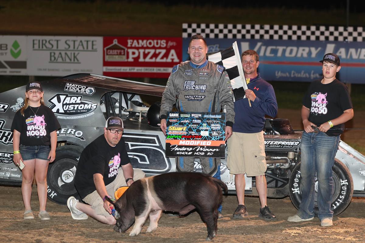 Monday night brought 148 race cars and drivers to Stuart Speedway for the Whole Hog 50 finale presented by Van Eaton Pork, Excel Floor Covering, Fox Welding, Dirt Track Bank, Supreme Lawn & Landscape, Wreckers or Checkers Bar, Porters Ag Solutions, Ganoe Excavating, Sniper Speed, Becks, Ramsey Grinding, 21st Century Cooperative, Midstate Machine and Titan Machinery! Feature winners for the night were Logan Anderson, Troy Ihrke, Dallon Murty, Daniel Wauters and Todd Shute.