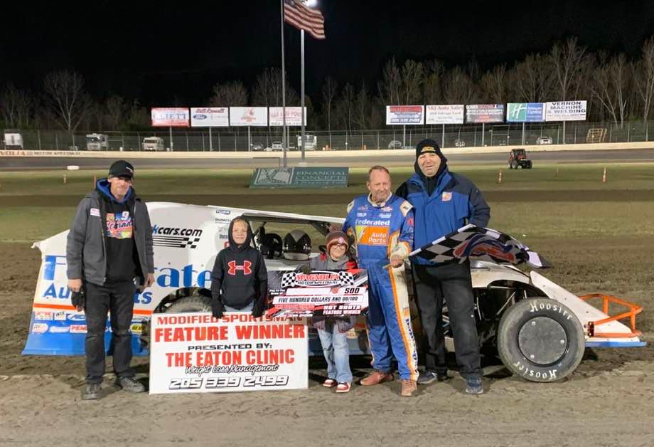 Ken Schrader mastered the Crate Racin' USA Modified Sportsman action at Johnny Stokes' Magnolia Motor Speedway (Columbus, Miss.) on Saturday evening.