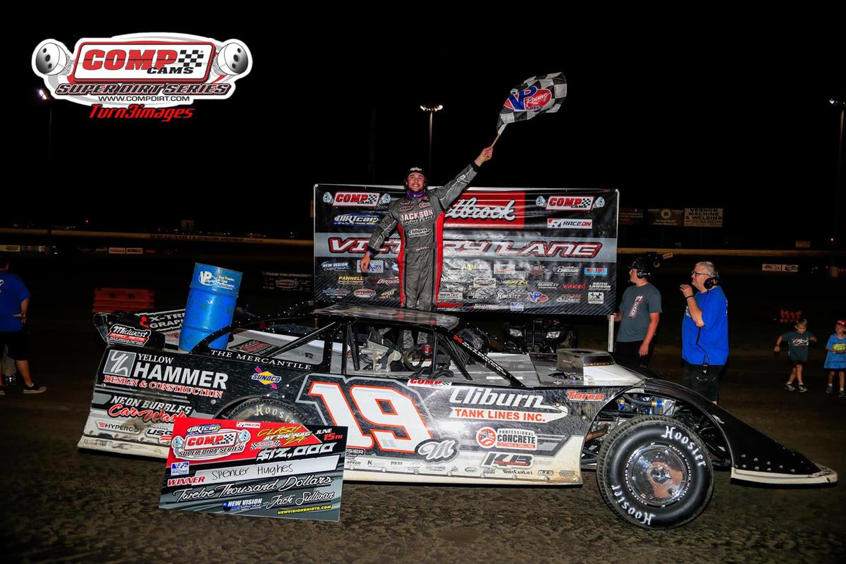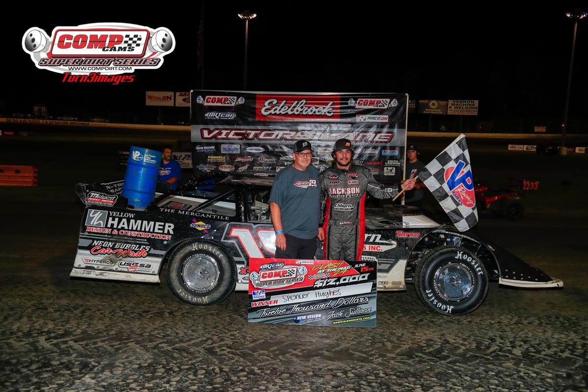 Rolling off fourth in Saturday's $12,000-to-win finale, Hughes once again battled Ethan Dotson for the lead before Dotson had a mechanical failure with less than 15 laps to go. Leading the final 12 circuits, Spencer secured the $12,000 victory and swept the Clash at the Mag weekend. The win was his third of the year at Magnolia Motor Speedway and his fifth win overall.