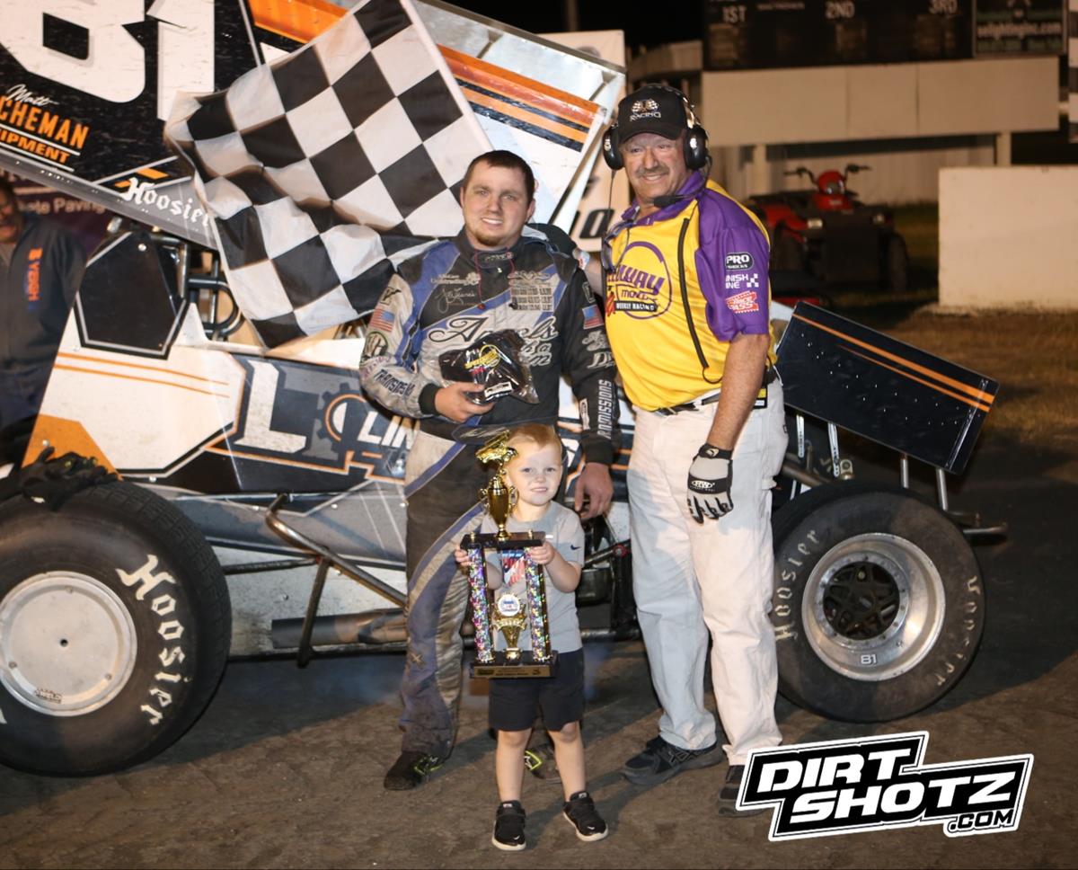 In dramatic style, Justin Jacobsma would take the win in Saturday’s Property Solutions of America Midwest Sprint Touring Series feature. Jack Dover took a back-row challenge from Cressman Sanitation and placed second. In a true act for sportsmanship, Johnn Cressman paid Jack Dover for the challenge for his efforts of going 24th to 2nd.