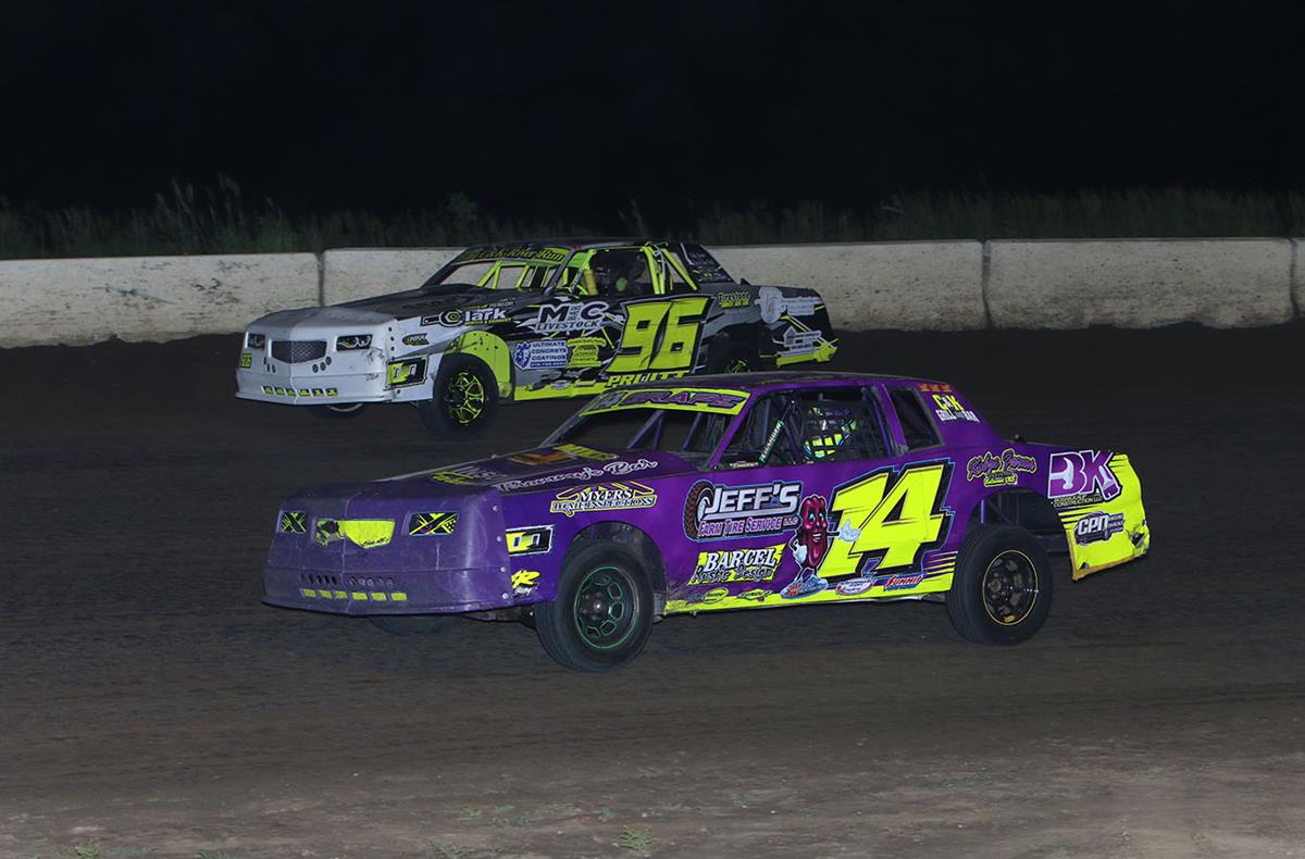 Brayton Carter pulled the #1 pill and jumped out to the early lead in the IMCA Northern SportMod feature with Mitchell Morris and Amber Cook in tow. A lap 6 caution was the only thing slowing down Carter as he drove to the comfortable win. Matt Avila finished second with Arie Schouten third, Morris fourth and Garrett Nelson fifth.