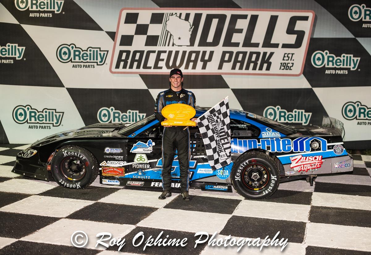 Wisconsin Dells WI-Luke Fenhaus returned to Championship form with a dominating performance in the Badger State 125 presented by Meristem Crop Performance. Gabe Sommers and Championship point leader Ty Frederickson would bring a star studded field of Alive for Five Super Late Models presented by Wegner Automotive to the line for the night’s main event. Sommers would take the early advantage and grow the lead. A Caution heavy race would bring out the Five Star Concrete and Excavating cone trackside many times bringing many battles for the top spot. Luke Fenhaus would finally get his shot at Sommers at the halfway point when Fenhaus would make a daring move into one and clear the 15. The restarts kept coming as the cool temperatures made for hot racing forcing the defending Alive for 5 Series Champion to defend his lead. He would survive the challenges and drive away to the Badger State 125 win in front of a high energy DRP crowd. Fenhaus was followed to the line by Gabe Sommers, Ryan Farrell, Jeff Storm and Casey Johnson. Fenhaus was your Fast Qualifier with a lap of 13.370. The qualifying race was won by Braden Berge while the heats were won by Levon VanDerGeest and Ryan Farrell. With one race remaining in the Alive for 5 Series for 2024 Casey Johnson comes into the Falloween 150 with a slight 3 point lead over Gabe Sommers and a 4 Point lead on Ty Fredrickson. The top 5 in point are separated by a mere 36 points. The Alive for 5 Super Late Model Series presented by Wegner Automotive finishes off 2024 with the Falloween 150 October 19th at Dells Raceway Park… With the great Racing and a Furious point’s battle this will not be one to miss!!!
