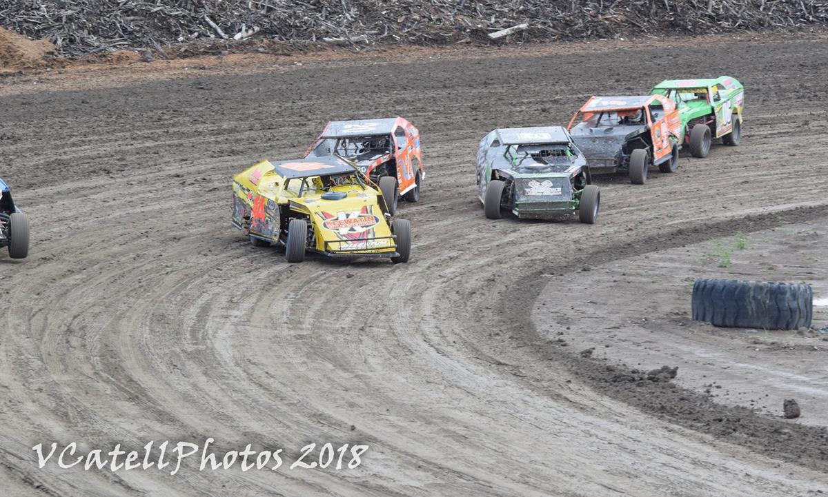 On Monday, only two Pure Stocks were able to return, with Derek Pollock defeating Pat Davis for the first feature win at the Speedway. Pollock also announced his plans for retirement once the car is sold.