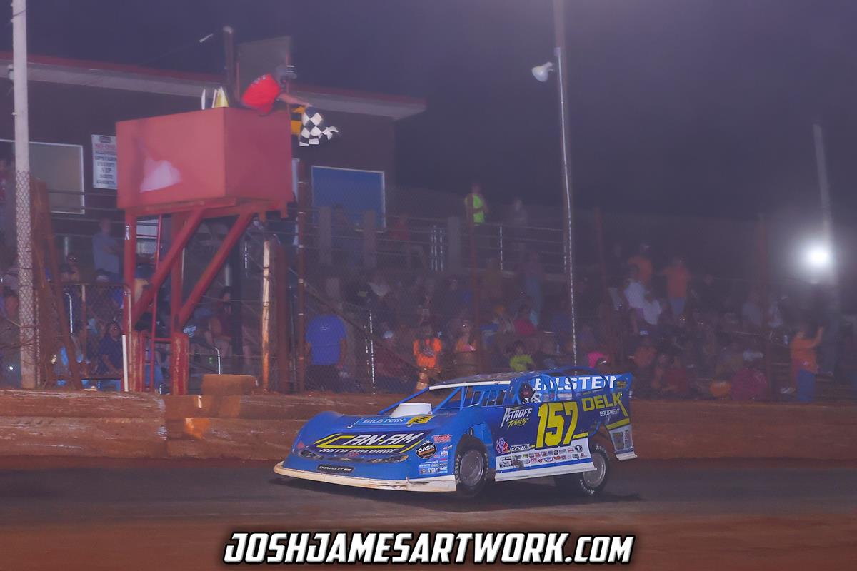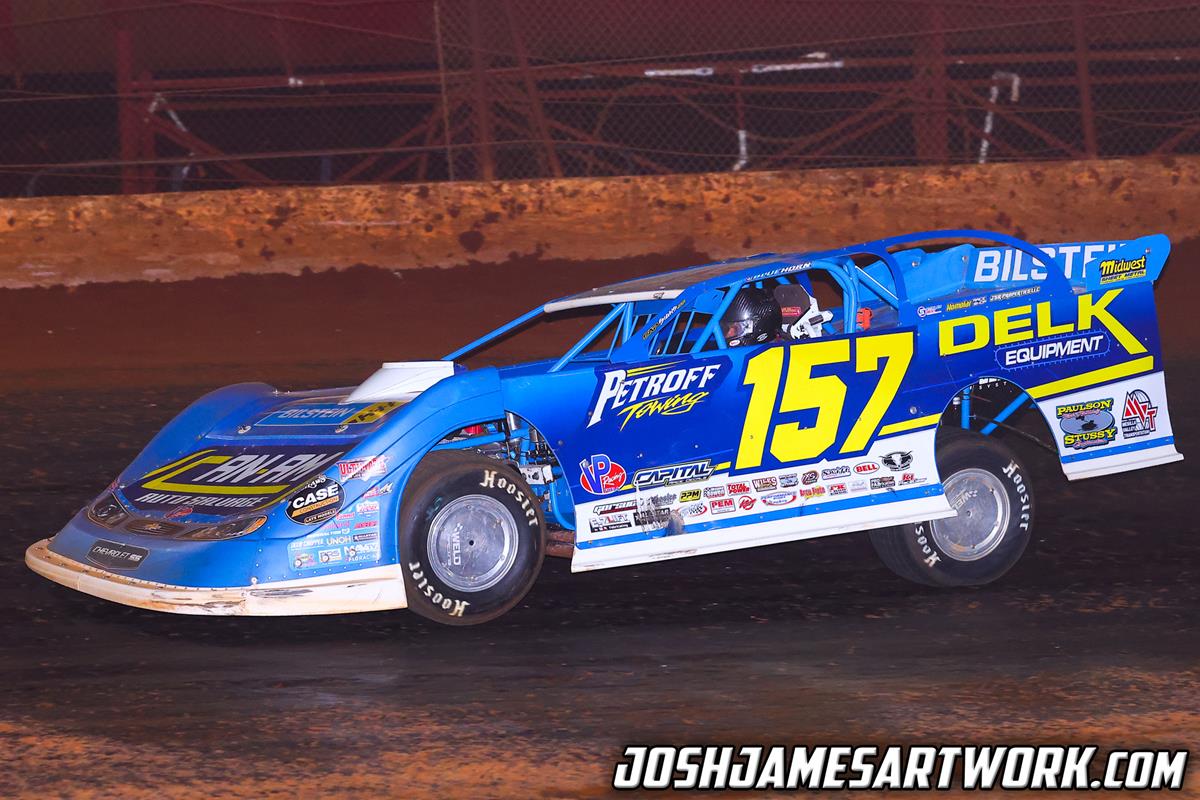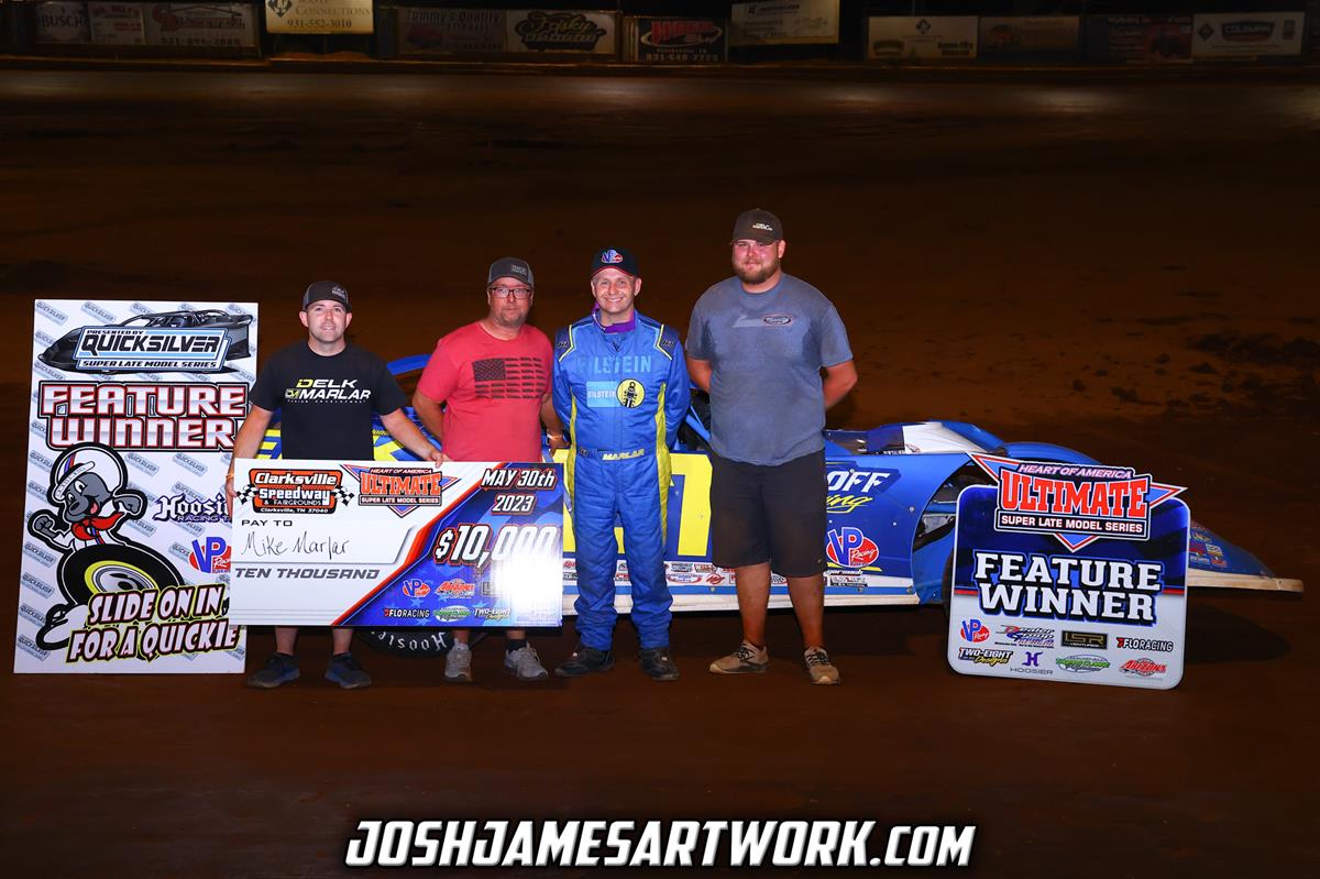 Mike Marlar collected his fourth victory of the 2023 season on Tuesday evening with a $10,000 Ultimate Heart of America Series victory at Tennessee’s Clarksville Speedway aboard his Delk Equipment Sales / Petroff Towing No. 157 Can-Am Auto Salvage / Mesilla Valley Transportation / Longhorn Race Car / Clements Racing Engine Super Late Model.