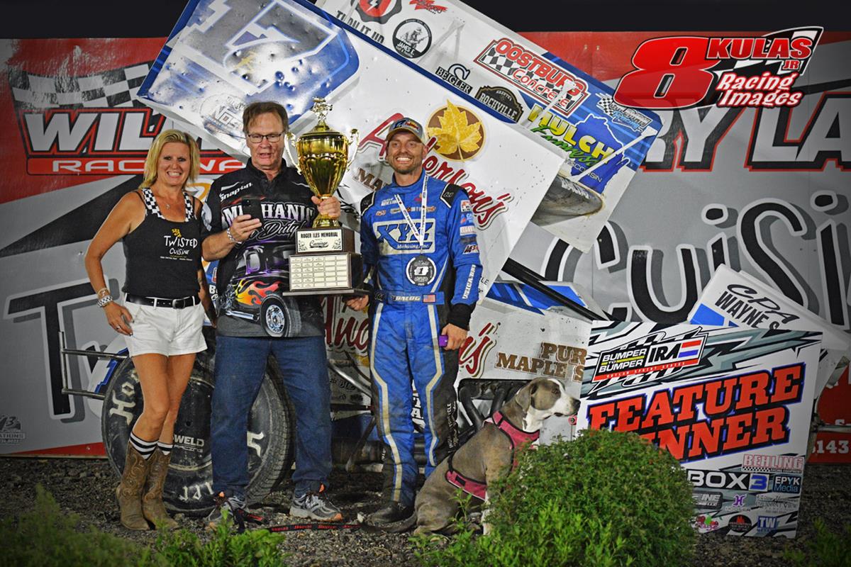 “It was a great race, and I was able to move up as the laps wound down,” said Balog, whose IRA win in victory was his 23rd career race win at Wilmot in the final appearance for the IRA 410 Winged Warriors at their original home track. “I have to thank my crew, sponsors, and these great fans. It’s fun to win here at Wilmot, and the Iles race is special as is fair night.”