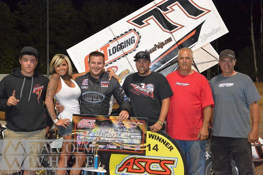 While negotiating some of the back of the pack Chico, California’s Kyle Hirst would make some key moves in traffic to seize the lead on lap twenty-six. Forler would go elbows up to try and run Hirst down but Hirst would beat Forler to the line on the last lap. It would mark the third win of this year’s Speedweek Northwest for Hirst and the Finley Farms/CLT Logging/Carlson Trucking/Rider Racing Engines #77 Maxim team owned by Scott and Jason Finley. It marked Hirst’s fourth career Speedweek win of his career, fifth ASCS-Northwest Region win with the series, and the first time ever visiting victory lane at CGS.