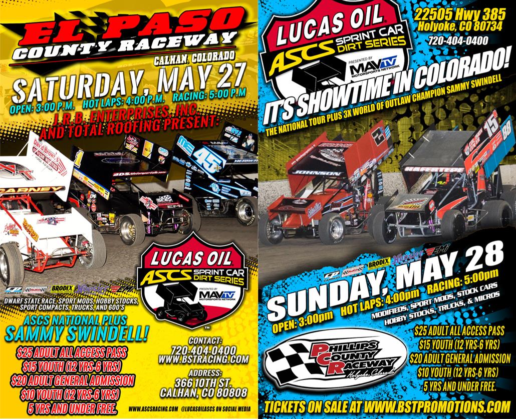 TULSA, Okla. (May 9, 2017) Memorial Day Weekend is primetime for dirt track racing all across the United States, and for the Lucas Oil American Sprint Car Series presented by the MAVTV Motorsports Network, that means a trip to the state of Colorado for events at El Paso County Raceway in Calhan, Colo. on Saturday, May 27 and Phillips County Raceway in Holyoke, Colo. on Sunday, May 28.