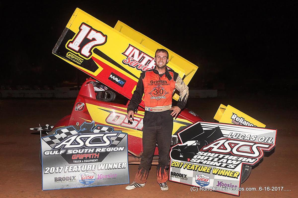 CLEVELAND, Texas (June 16, 2017) Picking up his first ASCS sanctioned win on the season, Channin Tankersley defended his home turf at Bronco Motor Speedway with the Griffith Truck and Equipment ASCS Gulf South Region as they squared off against the Lucas Oil ASCS Southern Outlaw Sprints.