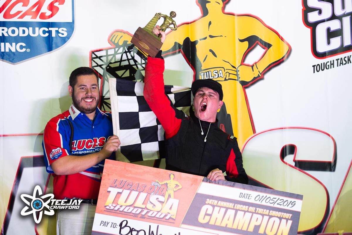 (Bryan Hulbert – TULSA, Okla. (January 5, 2019) Seven Golden Drillers claimed, and six by first-time winners, the 34th Lucas Oil Tulsa Shootout wrapped up Saturday night with California’s Ben Worth leading the charge of first-time winners with his victory in the night’s 55-lap Outlaw A-Feature.