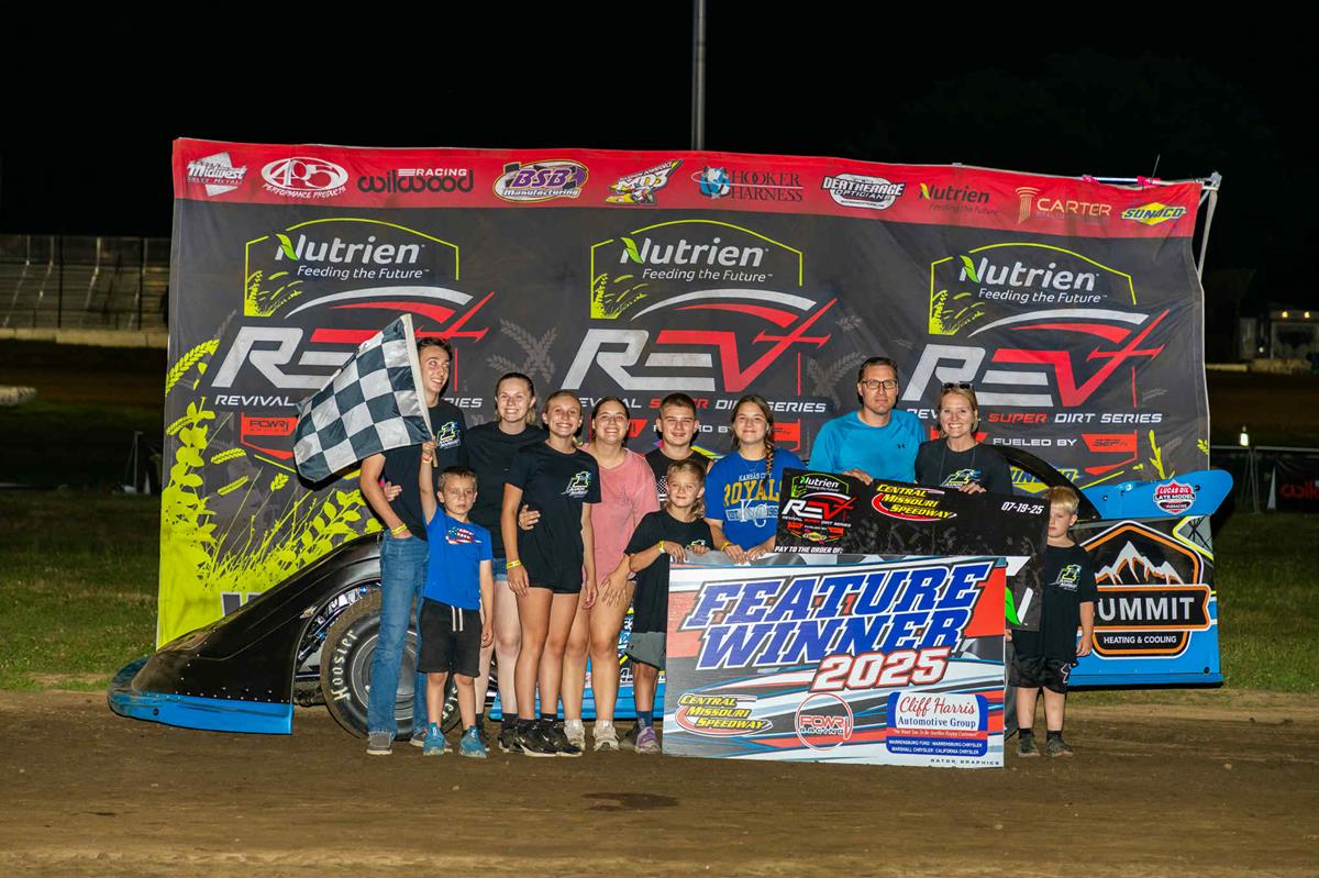 The second half of the season officially began Saturday evening at Central Missouri Speedway (CMS) with the first-ever appearance of the Revival Super Dirt Late Model Series. Joining the 21 late models were 17 Super Stocks, 14 B-Mods, 12 Pure Stocks, and 13 Midwest Mods, for a total of 77 cars signed in.