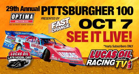 The Pittsburgher 100 will be broadcast LIVE on Lucas Oil Racing TV and will be available to those with a yearly subscription.