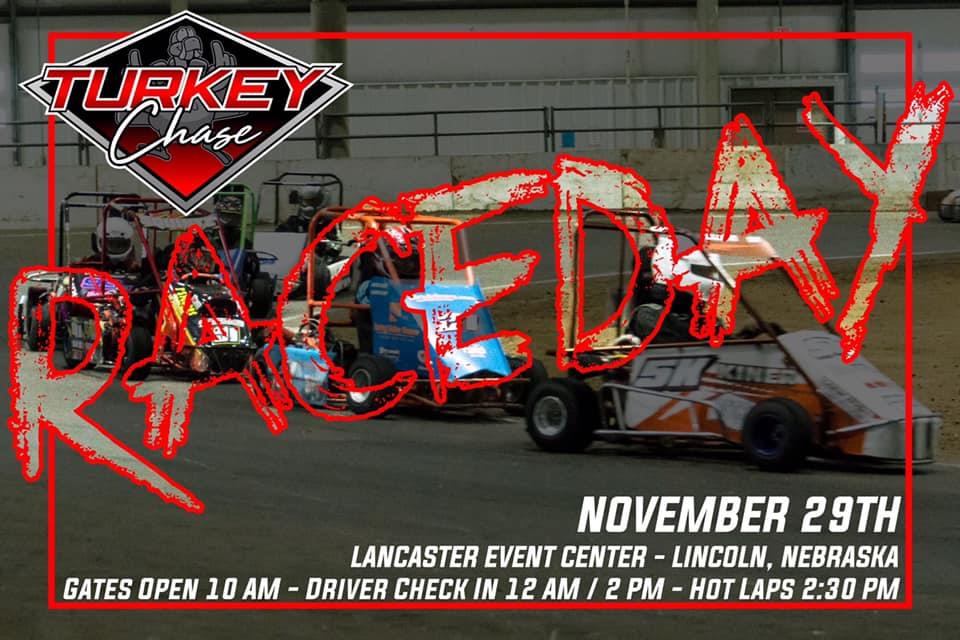 Due to the DNF in the first heat, KC was lined up outside row four for the feature. On the initial start, KC did great as he quickly jumped down into the racing groove and pulled out of turn two in fifth place. When the field motored into turn three, KC made a challenge to the inside of Garner who was running in fourth. Garner pinched KC down into the discs and the duo spun resulting in contact from Evans and Kaden Rice spun to avoid heavy contact. All racers were able to continue for a complete restart. The other drivers did not allow for KC to get the great start and they filled in the “windows” moving KC back to the ninth running spot on the track. The entire field was paced by Stevens while racing around the track nose to tail in a long line. KC was following the Carson Berglund kart for several laps. As the field passed the Yaw machine, drivers tried making passes but KC was unable to get passed the Berglund kart. With only a few laps to go, Berglund’s kart got up on two wheels allowing KC to move up a position. On the next circuit, WIlly Kirk and KC were racing for the same real estate on the track and they made contact with Kirk going over the front hood of Sparks but both continuing on. They were sent to the tail and with a green white checkered dash, they tried their best to move past the Carlos Vegara kart but again got tangled at the finish line just under the white flag. KC and Kirk were sent to the infield for involvement in the last two cautions and Stevens went on to win day two of the Turkey Chase. KC was credited with an eighth place finish.